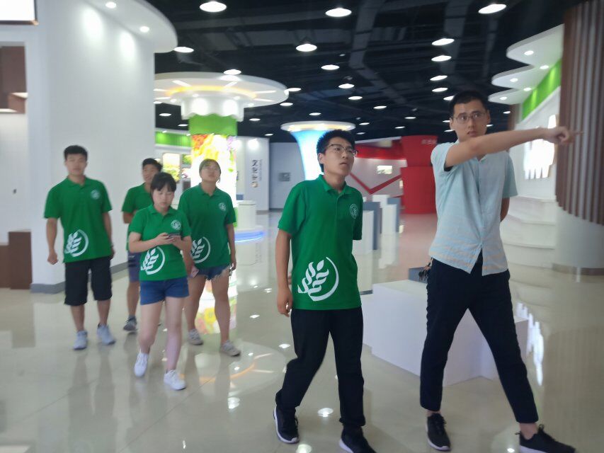姚总向调研队介绍展厅的分区情况