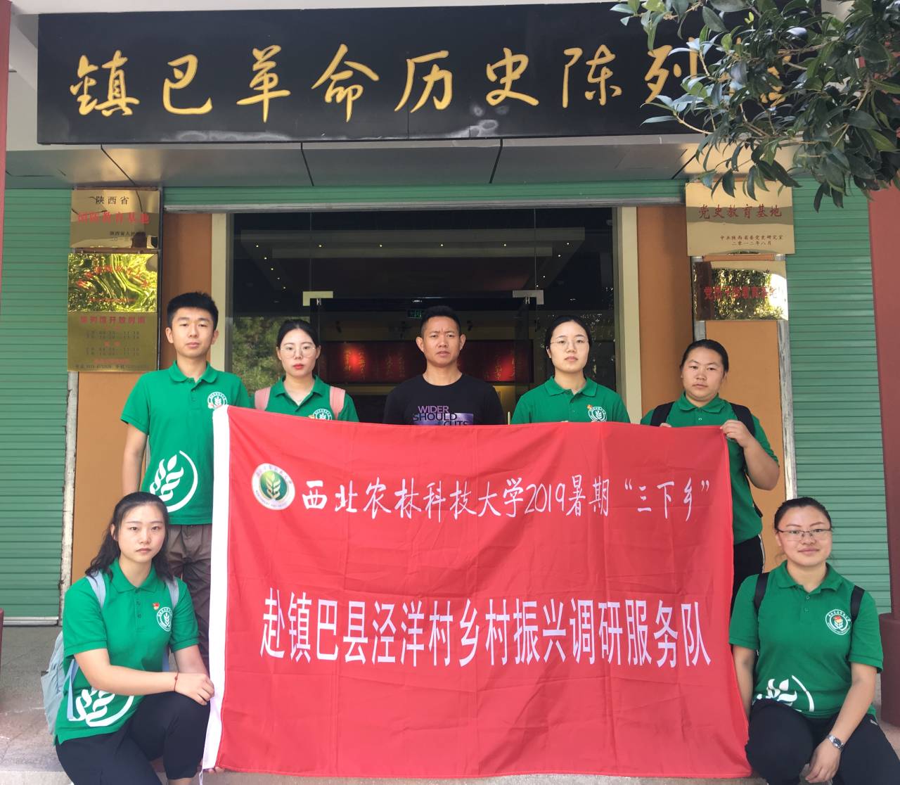 红色教育基地与工作人员合影