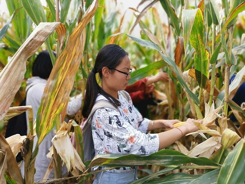 秋风送爽,丹桂飘香,值此丰收季节,为确保第三届玉米高产竞赛的顺利完成,收掉田中已成熟玉米,3200威尼斯vip高产协会于2019年10月2日在标本园开展了玉米测产活动,参与人员为第三届玉米高产竞赛各组成员及各组指导老师。