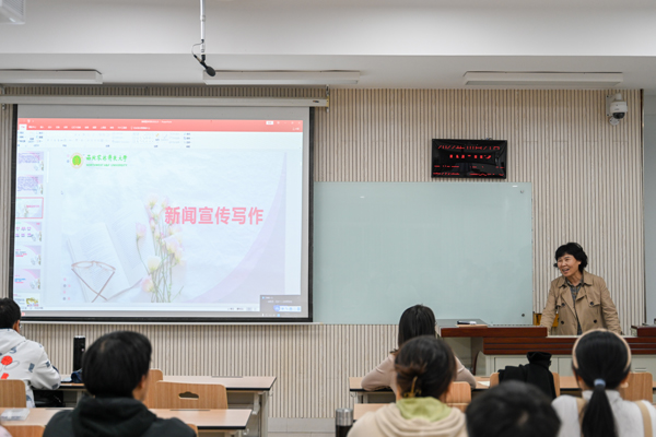 张琳老师首先表达了对在场同学和老师的欢迎,以及能再次站上讲台的欣喜。随后张老师直接切入正题,新闻的本质——是传播信息的一种文体,着重介绍了“消息”和“通讯”的写作技巧。同时张老师指出新闻稿的正能量效应,作为新闻撰写者应注意的底线问题,引导同学们树立正确的新闻观。她还强调了当代互联网时代的宣传,新闻工作者要坚守阵地,做到捧场子、抢场子、占场子。在团课的后半节,张老师以多篇真实新闻稿为例,从多个角度鼓励同学夯实写作基础,开拓个人眼界。最后张钰琪老师作团课总结。