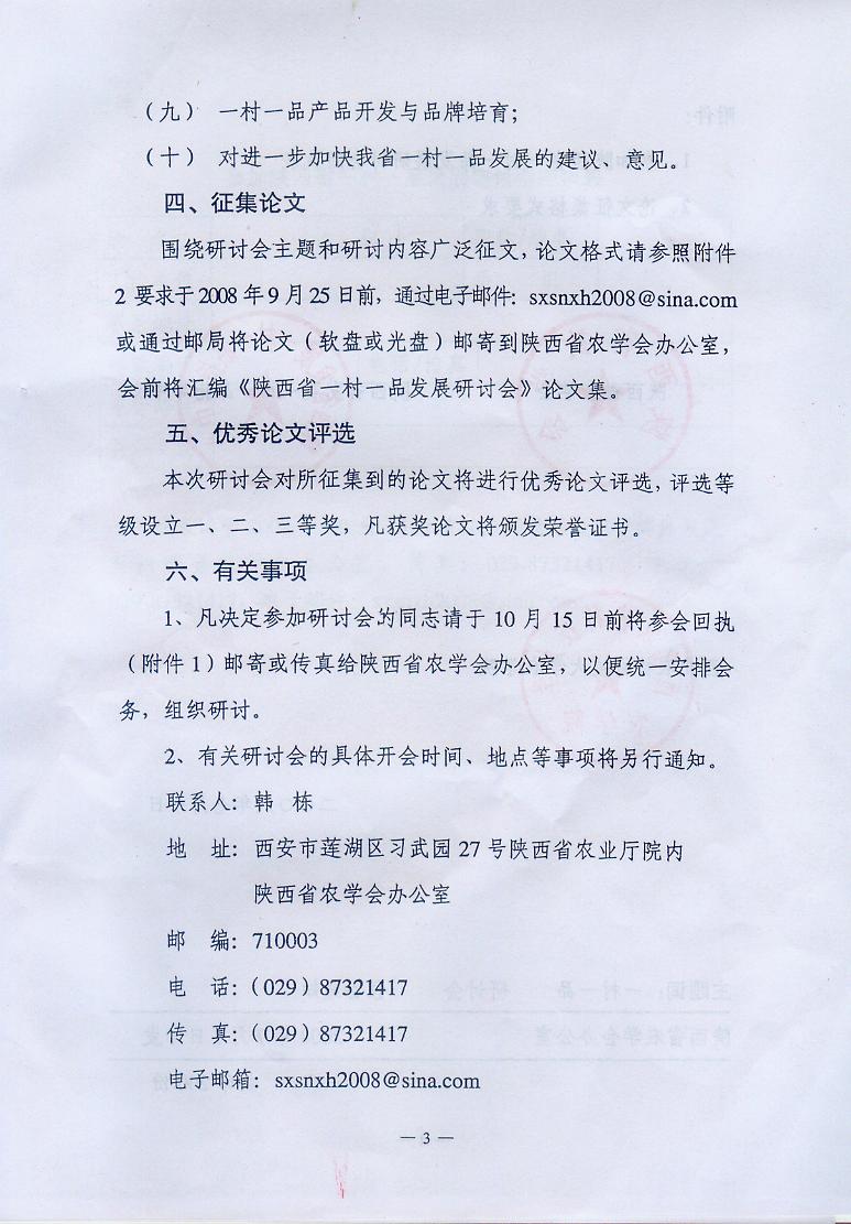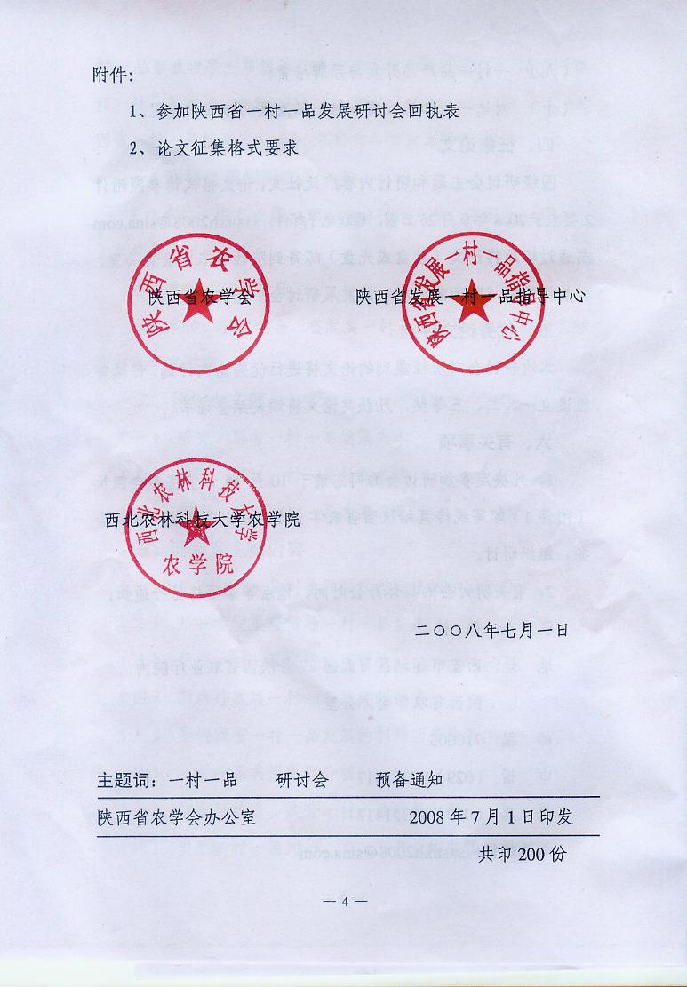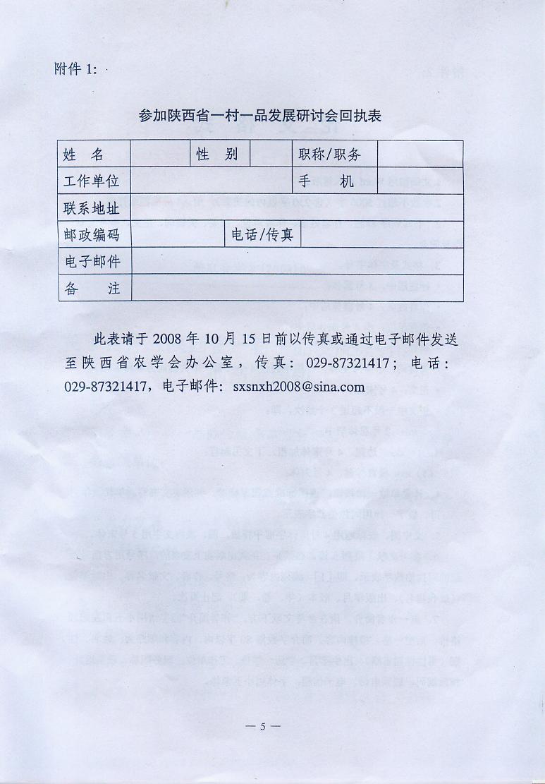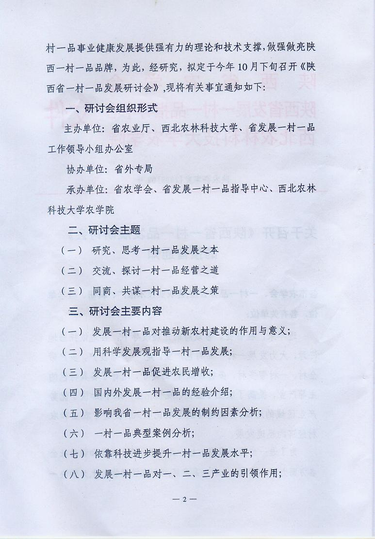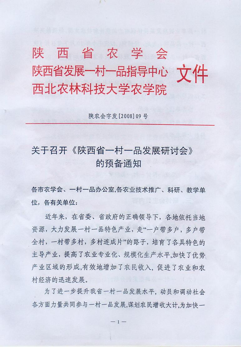 关于召开《陕西省一村一品发展研讨会》的预备通知