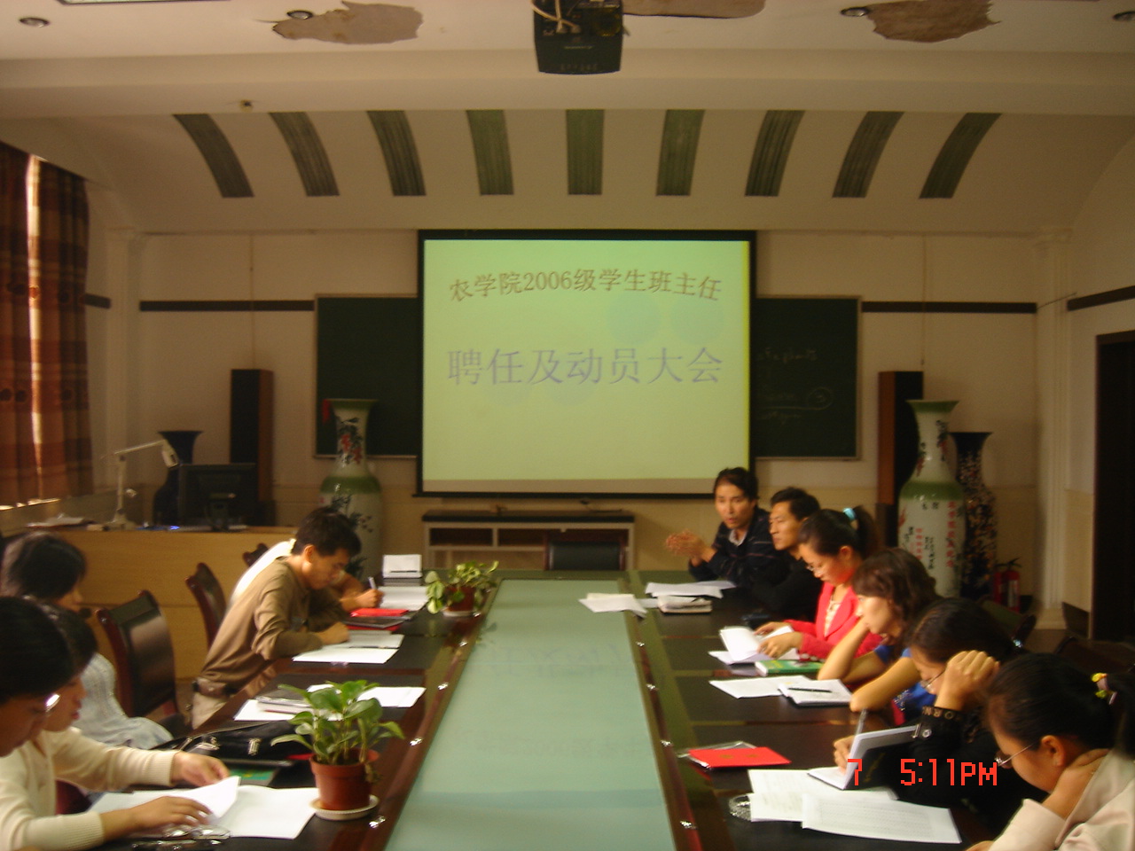 98日下午, 3200威尼斯vip召开2006级学生班主任聘任暨动员大会。院党委书记薛吉全 、党委副书记惠安堂、副院长廖允成,辅导员以及新聘任的2006级学生班主任参加了会议。