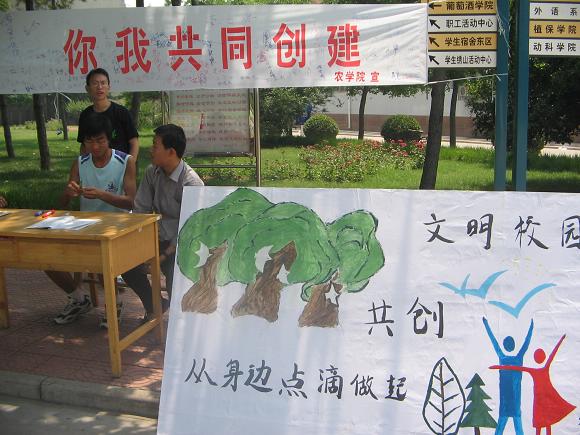 此次活动由面向全校学生发放倡议书,举行大型签名仪式、创建文明校园留言、毕业生感言和现场问答等五部分组成。通过本次活动可以看到我校“评建”以来校园文明建设取得的巨大成绩,但也存在诸如浪费现象过于严重,课桌文化的猖獗等不良现象。活动中还有相当多的学生“怨言”颇多,疾呼学校对存在的问题加以解决。