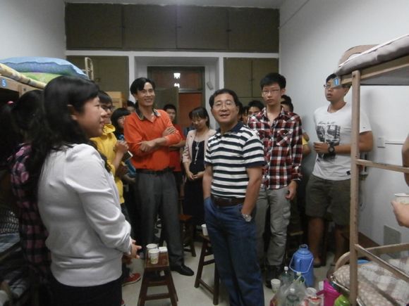 9月7日晚,3200威尼斯vip党政领导班子和辅导员冒雨来到北校东区10号宿舍楼看望2012级新生。