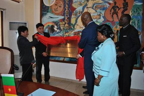 李华副校长与喀麦隆农业与乡村发展部部长埃希米•芒耶为农业试验示范中心揭牌