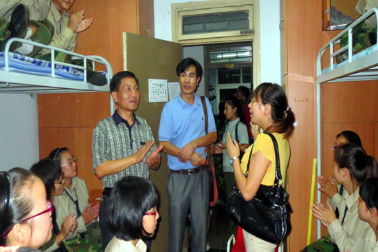 院领导对即将开始大学学习生活的新生们表示了祝贺,并详细了解了同学们的报到情况。今年,我校开始提倡新生独立报道,家长们在报到的北绣山活动中心门前就必须止步,新生需要带着材料及录取通知书进入综合体育馆内,独立登记入学。院长廖允成在看望时,问得最多的一句话就是“家里人陪你来了吗”,叮嘱最多的是“来到学校有什么困难一定要跟老师说,欢迎大家和我打电话发邮件联系”。