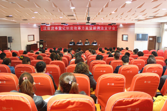 “只有一元钱也可以办公司”王宏副局长此话一出,会场顿时沸腾,同学们无不感叹公司登记条件的宽松。王宏指出:“放宽公司登记条件是贯彻落实党的十八届二中、三中全会精神,转变政府职能,优化投资环境,激发市场活力的必然选择。对于大学生而言,最为现实的意义就是降低了市场准入的门槛,为创业提供了极大的便利。”他鼓励同学们说:“有创业梦想的同学刚毕业时虽面临没有厂房、没有土地、没有固定资产等困难,但是有技术、有智力、有创造力,在当前市场条件下一定可以成功走上创业之路。”