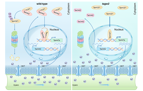 TaGW2-TaVOZ1模块通过泛素依赖及非依赖途径调控小麦耐盐性的分子机制