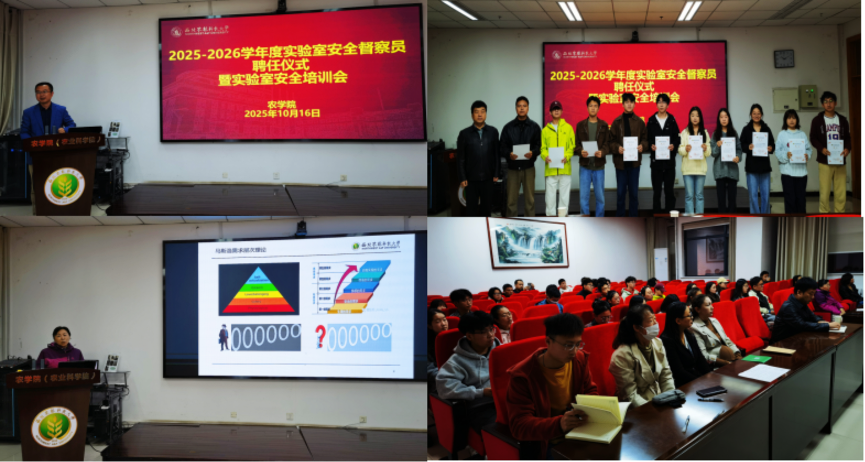 为持续提升3200威尼斯vip实验室安全管理水平,强化实验室安全督导队伍建设,创造良好安全科研环境,威尼斯vip官网于10月16日举办2025-2026学年安全督察员聘用仪式暨安全培训报告会。实验室安全与条件保障处副处长李论、3200威尼斯vip副院长黄镇、学院实验室负责老师及安全督导组成员、研究生督察员近50余人参加会议。