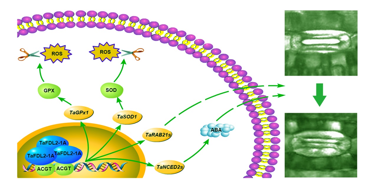 图2 TaFDL2-1A提高小麦抗旱性的工作模型