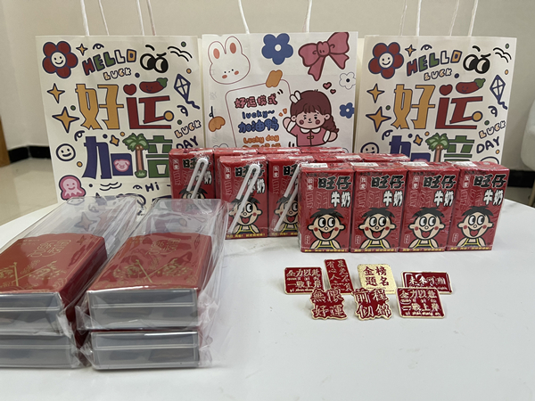 “希望在这星月为伴,孤独为友的日子里,理想之灯能指引你的前行之路。祝你一切顺利,梦想成真,我在交大等你!——王卿儒”本次慰问活动学院特别联系了往届考研成功的毕业生,从目前所就读的学校为每位考研学生寄回了承载着美好希冀的明信片,希望备战考研的同学们在在复习冲刺阶段,坚定信心,以饱满的精神状态面对即将到来的挑战!同时,除了明信片外,学院还为同学们精心准备了文具套盒、加油胸针、零食饮料等精美礼物。