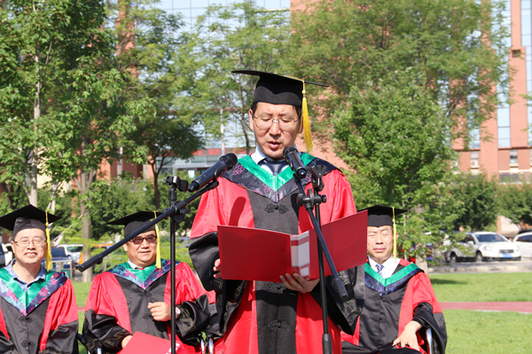 学院党委副书记吴清华宣读《关于授予杨秋悦等174名本科毕业生学士学位的通知》,院长单卫星教授和奚亚军教授、胡胜武教授、冯佰利教授、闵东红教授、王中华教授、马翎健教授为获得学士学位的本科生拨穗,并颁发学位证书。