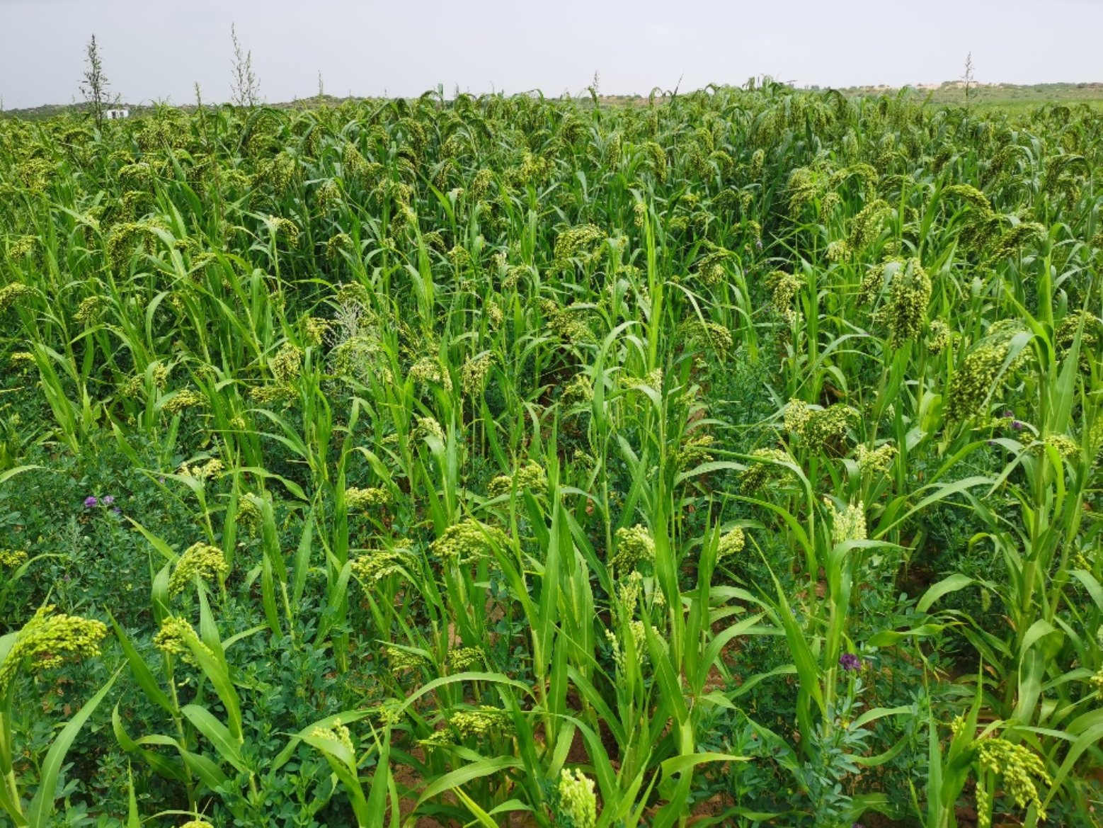 8月6日至7日,鄂尔多斯市科技特派员、3200威尼斯vip冯佰利教授、高小丽研究员来到鄂尔多斯市乌审旗开展糜子产业调研和技术指导工作。乌审旗工信和科技局陈波局长、谷世红农艺师,乌审旗塔来乌素农牧业开发有限责任公司董事长萨日娜拉等参加了调研工作。调研组一行先后考察了乌审旗塔来乌素农牧业开发有限责任公司,观摩了糜子苜蓿混作种植模式、多功能富硒糜子示范田长势情况,针对田间生长情况和近期天气状况提出糜子中后期田间管理技术指导意见,现场指导种植户要及时采取灌水、叶面追肥和喷硒等措施促进糜子灌浆保丰收,并就“乌审大红糜子”品牌打造和产业提升进行了交流探讨。